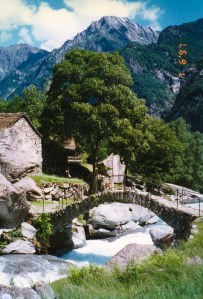 Our friendship his given us the chance to live Swiss. The first time we visited them in Switzerland, in the 1990s, I saw how careful they are about energy consumption. That caused me to come home and look at the cavalier way I used energy–something I had been oblivious to. Heck! I’d even thought of myself as environmentally aware. I began to dry clothes on a rack instead of always in the dryer, recycle containers and bags, and limit water use long before these conservation measures were talked about much in the US. We could step outside Susanne and Martin’s door in their little suburban village and catch the tram that runs into Basel. Getting around was so much easier than here on the west coast, where mass transit means driving with a million other drivers on interstate freeways. Susanne and Martin also took us to hidden treasures that we probably would never have found on our own; to parts of Switzerland that are not touristy. Our favorite is the Tessine, an Alpine region in the south.